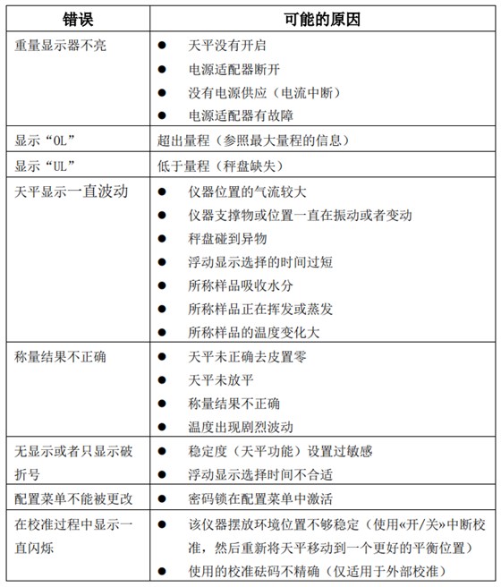 更多普利賽斯天平故障現(xiàn)象及原因供參考: