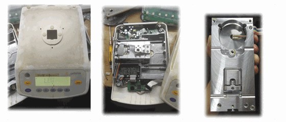 2、故障檢查,拆開天平仔細(xì)檢查發(fā)現(xiàn)灰塵太多,并帶有油污